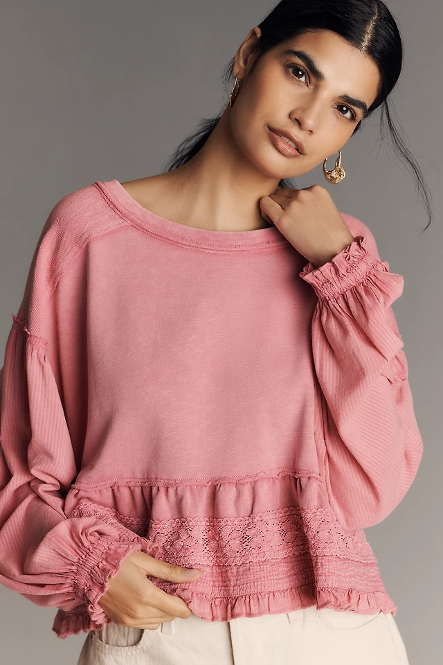 Easy Long-Sleeve Ruffle Babydoll Top