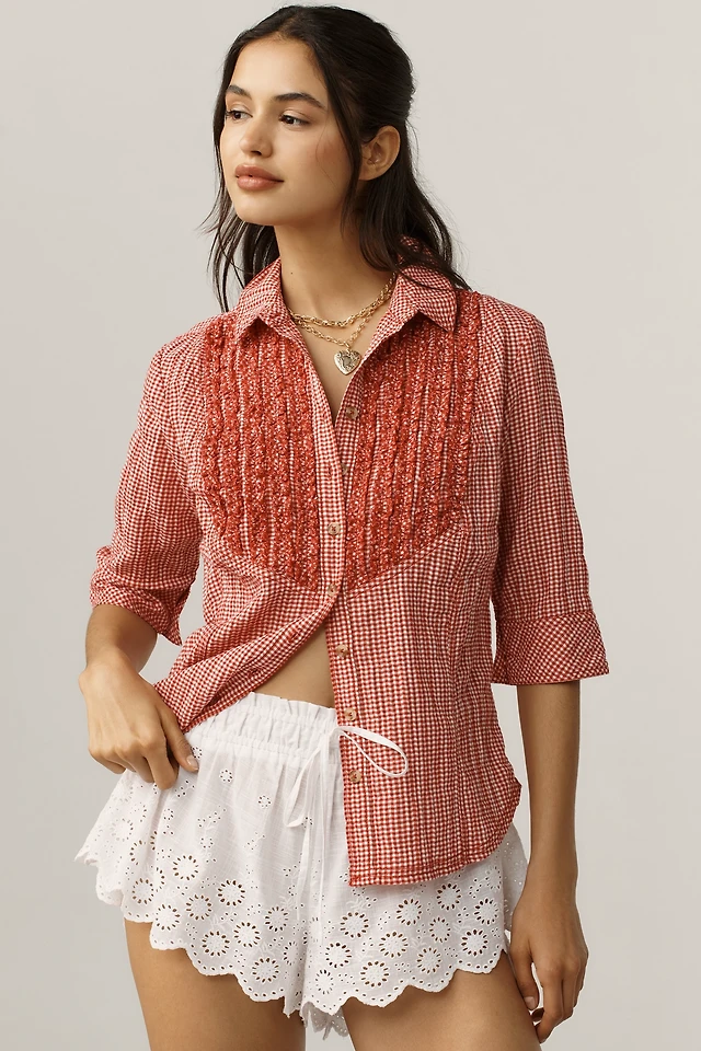 Pilcro Pintuck Half-Sleeve Buttondown Shirt
