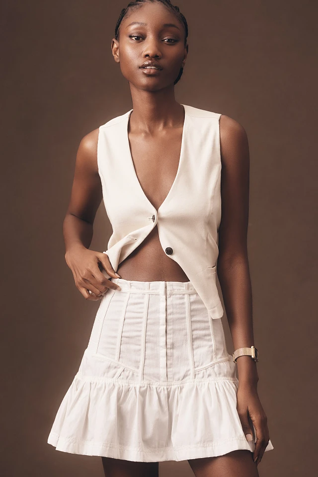 Pilcro Pintuck Basque-Waist Denim Maxi Skirt