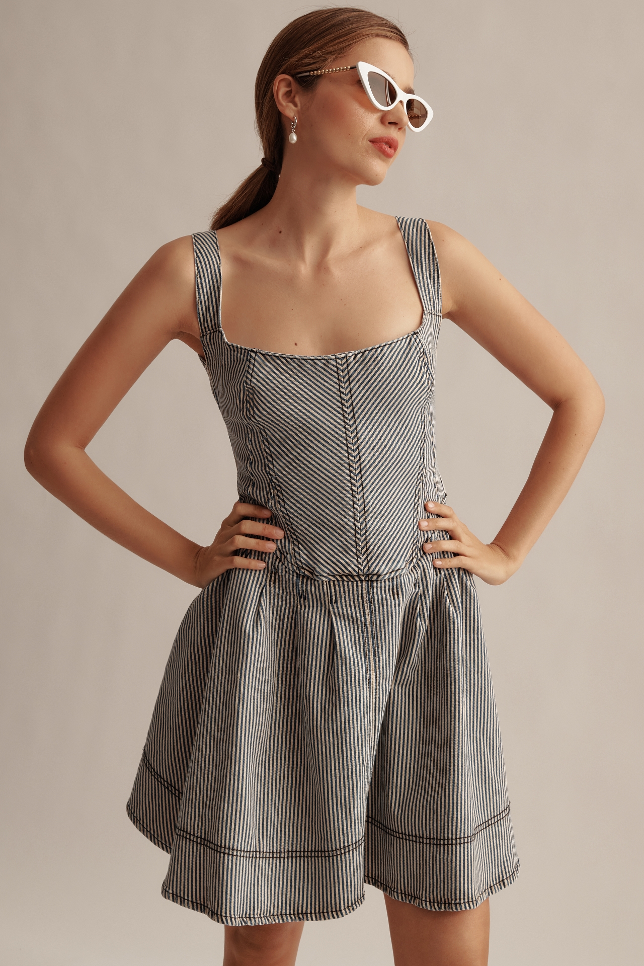 English Factory Tie-Strap Square-Neck Denim Mini Dress