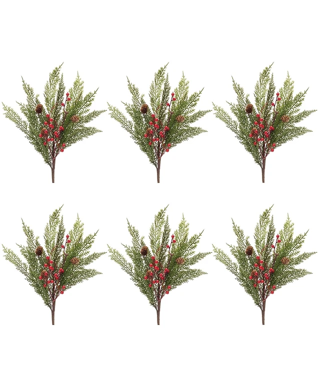 Pine and Berry Spray for Festive Holiday Decor (Set of 6)