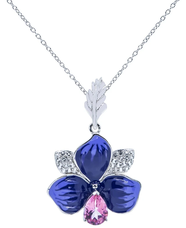 Pink Topaz (1 ct.t.w) and Enamel Flower Pendant Necklace in Sterling Silver