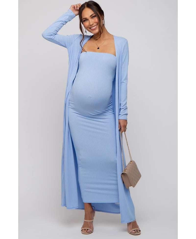 Pinkblush Maternity Light Blue Ribbed Sleeveless Dress Cardigan Set in Bloomington, MN