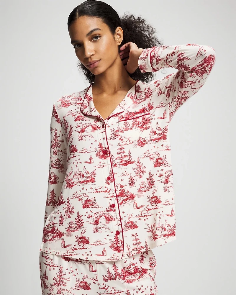 Cool Nights® Pajamas are loved by millions of women thanks to their softness, stretch, and lightweight fabric that’s always cool-to-the touch. You'll love the flattering V-neck and button-front design on this long-sleeved pajama top. Look to our Cool Nights® sleep separates in exclusive prints and versatile solids to mix, match + layer your way to a perfect-for-you pajama wardrobe.