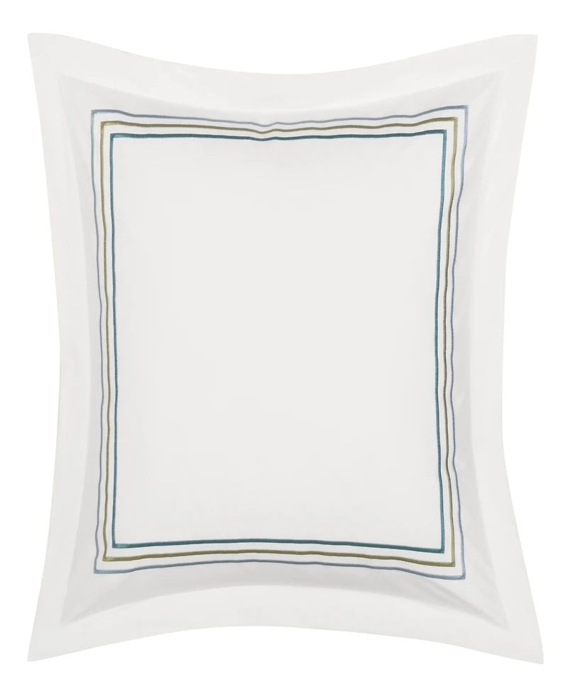 Refine your bedding with the Meadow Euro Sham, an accent piece that blends a sleek border design with elegant charm. This ultra soft sateen cotton pillow features an embroidered border in shades of blue and green with a flange trim and hidden zipper closure. Whether placed on your bed for coordinated charm, this throw pillow exudes tasteful cottage decor.
