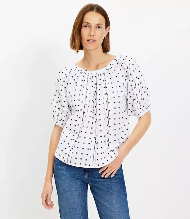 Challis Embroidered Cut Out Long Sleeve Blouse