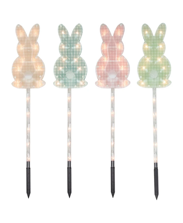 Plaid Pastel Bunny Easter Pathway Marker Lawn Stakes Clear Lights Set, 4 Piece