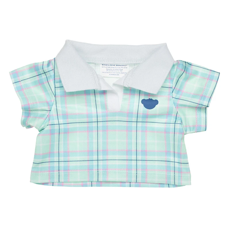 This bright plaid polo shirt for stuffed animals will have your furry friend looking very dapper.