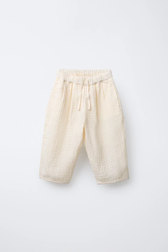 PLAID TEXTURED BAGGY PANTS