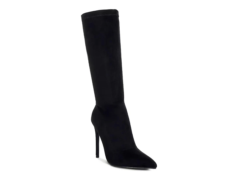 Elevate a night out look with the sleek Playdate boot from London Rag. The sharp, pointed profile, tall silhouette, and stiletto heel combine for a timelessly stylish addition to your collection.