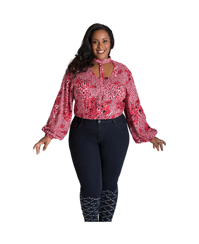 Poetic Justice Plus Leopard Print Puff Sleeve Blouse