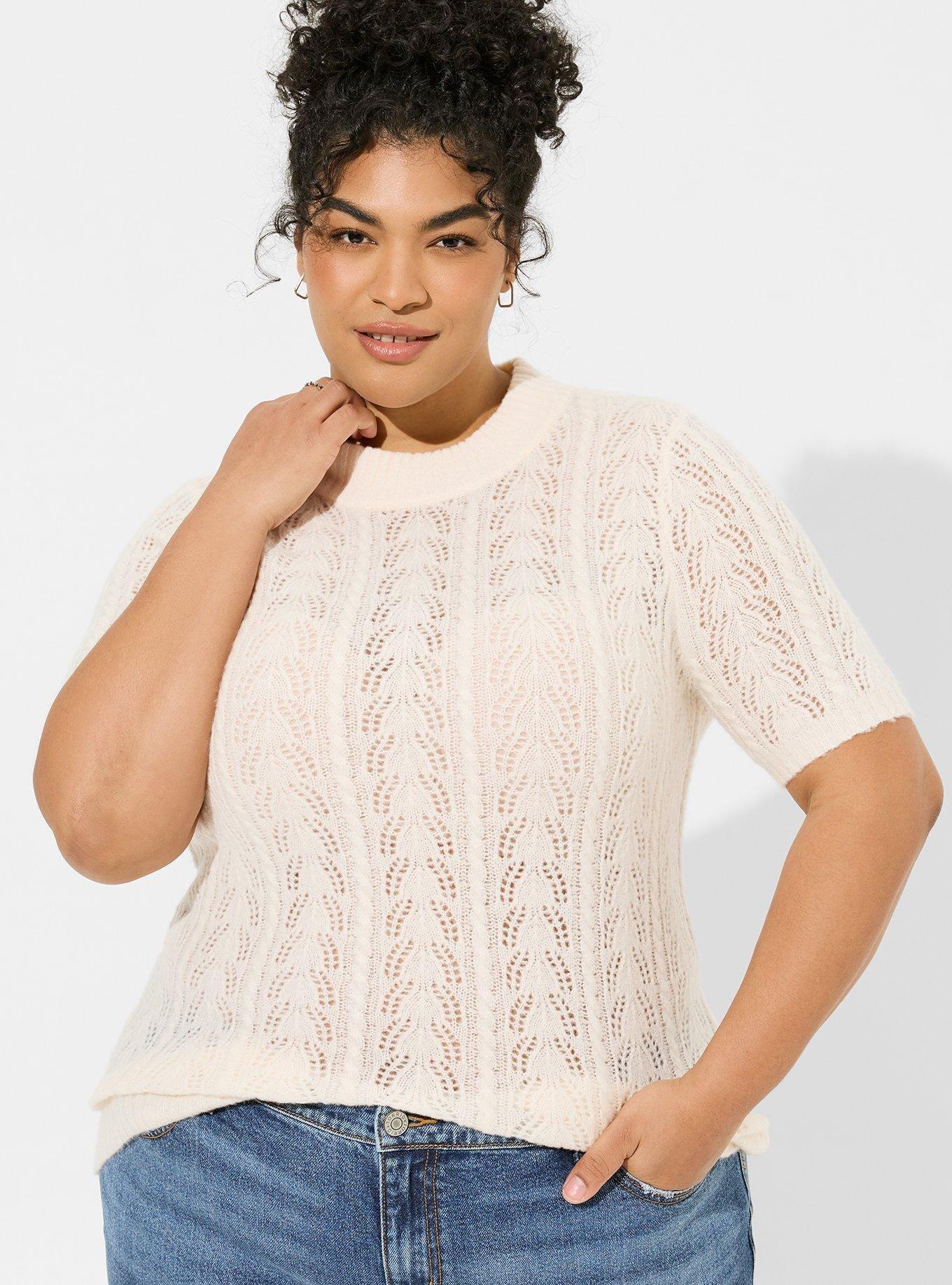 Pointelle Pullover Short Sleeve Sweater in Bloomington, MN