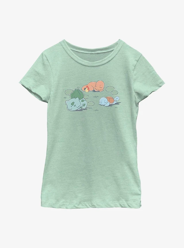 Pokemon Bulbasaur Charmander Squirtle Nap Time Youth Girls Boxy Crop T-Shirt