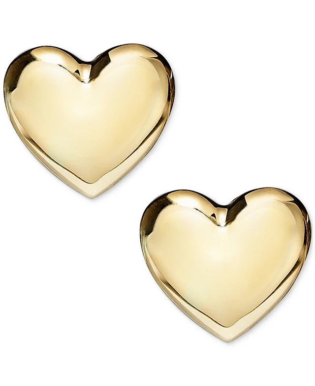 Polished Puffed Heart Stud Earrings in 10k Yellow Gold, Created for Macy's