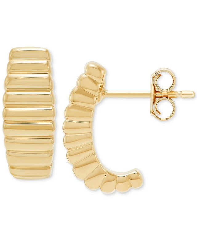 Polished Ribbed C-Design Small Hoop Earrings in 14K Gold, 59"