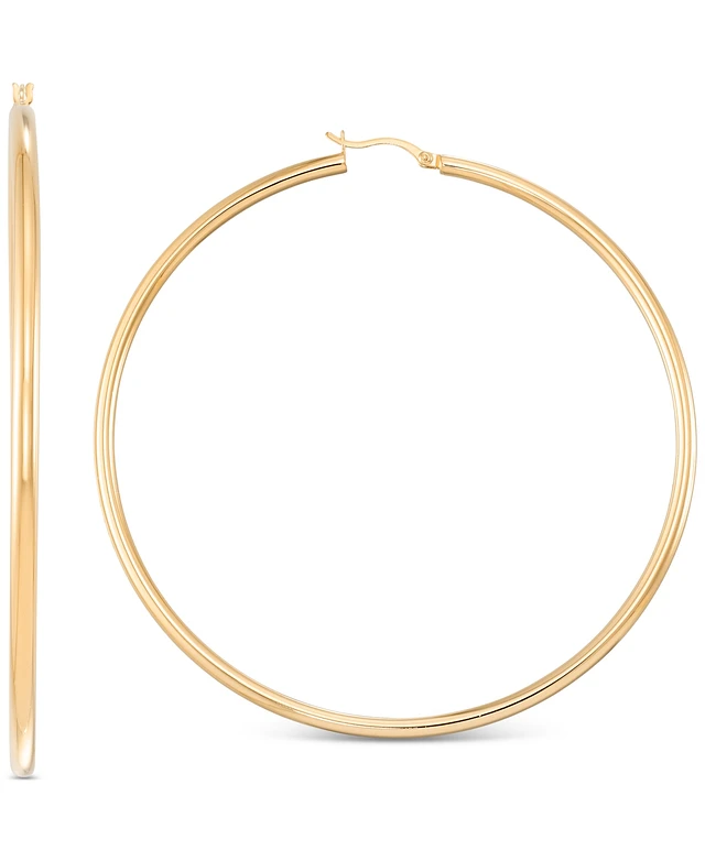 Polished Tube Extra-Large Hoop Earrings in 14k Gold-Plated Sterling Silver, 80mm