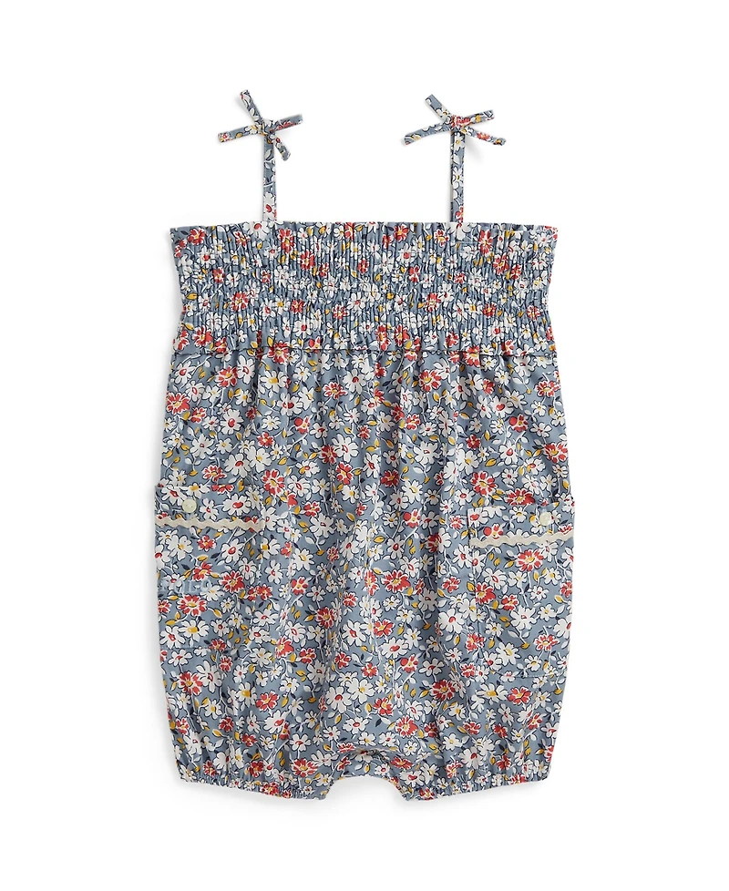 Polo Ralph Lauren Baby Girls' Floral Smocked Straight Neck Bubble Shortall