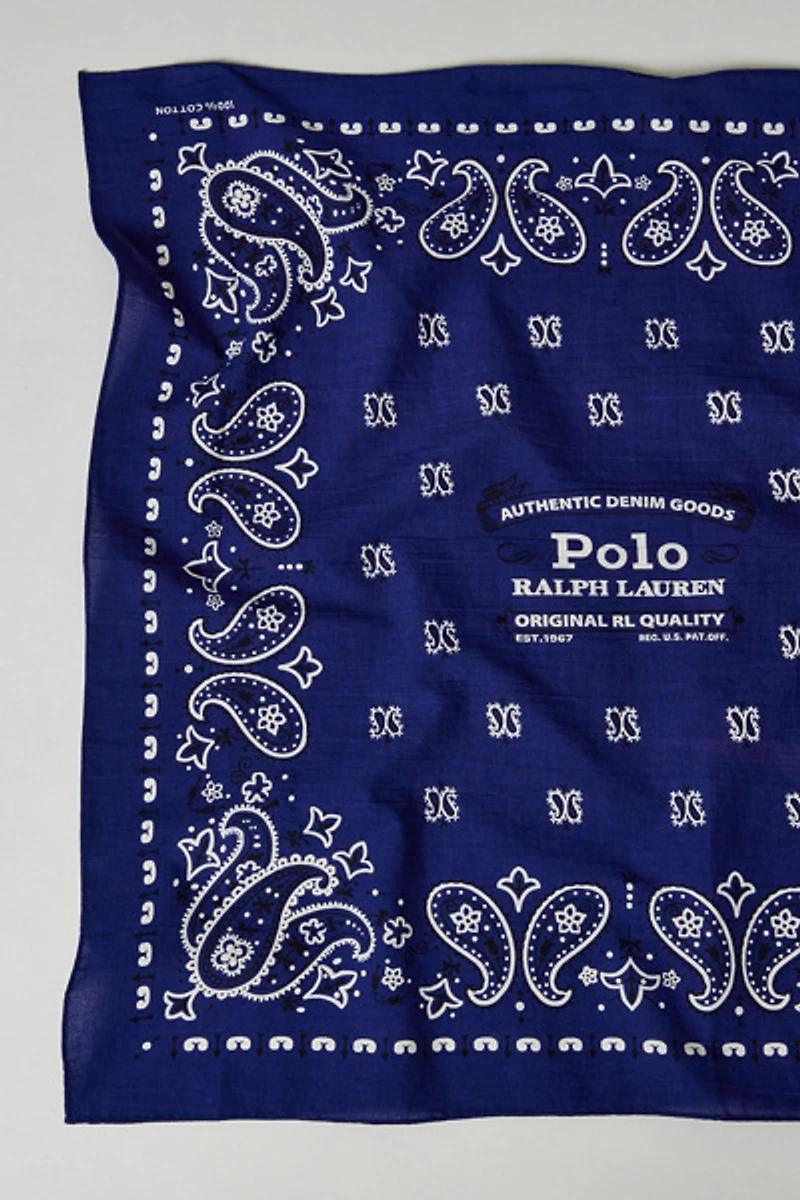 Classic cotton bandana by Polo Ralph Lauren with branded text and a classic paisley pattern.