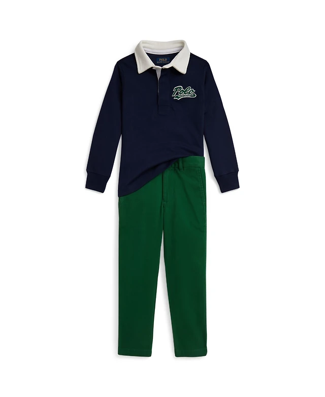 Polo Ralph Lauren Toddler and Little 2-Piece Boys Logo Rugby Shirt Twill Pants Set