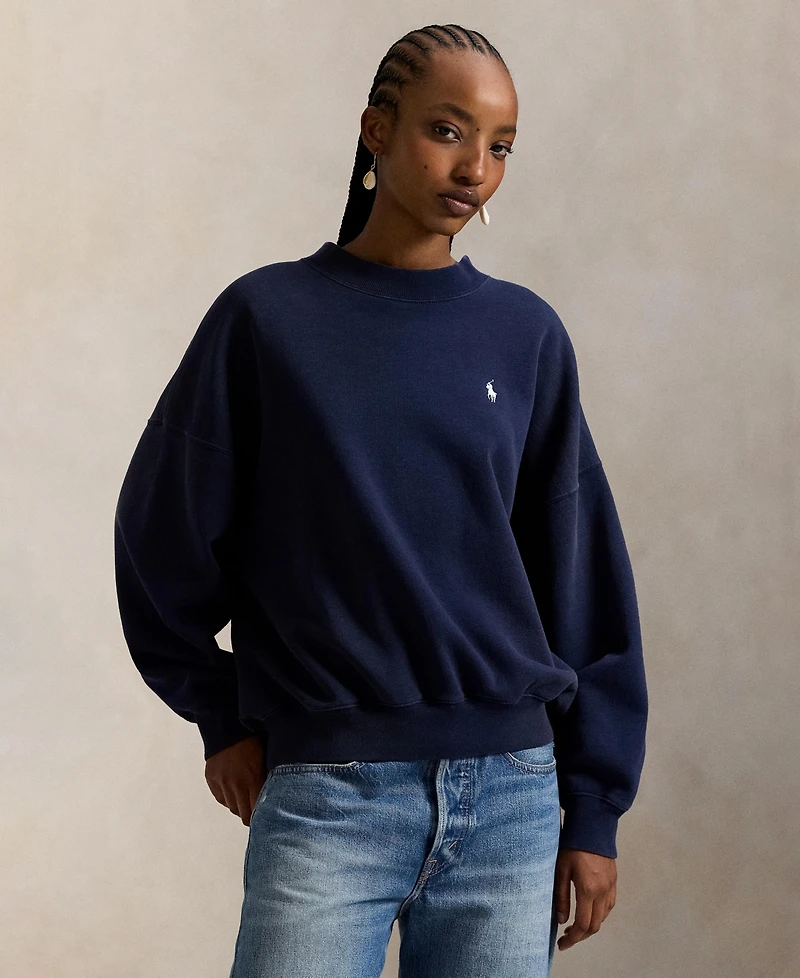 Designed for an oversize fit, this Polo Ralph Lauren fleece crew neck top features bold lettering across the back and an embroidered Pony at the chest. Dropped shoulders and a ribbed hem enhance the comfortable silhouette.