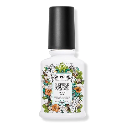 BEACH BUM POCKET SPRAYER 1.0FLOZ. Benefits: Most odor eliminators are as "natural" as pleather pants - but not Poo~Pourri. When they say natural, they actually mean it.. Key Ingredients: Made with a blend of natural essential oils and other top secret ingredients, Poo~Pourri's revolutionary Before-You-Go Toilet Spray makes going No. 2 easy-breezy without making you sneezy.. Formulated Without: Aerosol. Alcohol. Parabens. Phthalates. Formaldehyde. Synthetic fragrance.