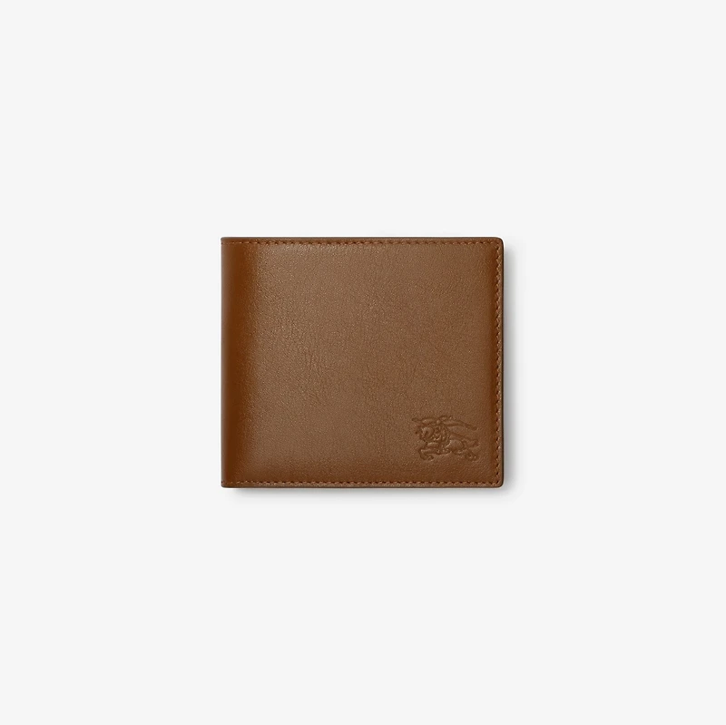 A bifold wallet made from calf leather and lined with a pop of Burberry Check in seasonal finch brown. The style is finished with an embossed Equestrian Knight Design.