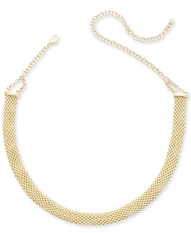 Popcorn Mesh Link Choker Necklace in 14k Gold-Plated Sterling Silver, 13" + 5" extender