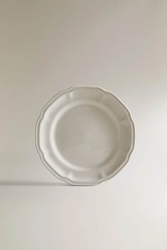 PORCELAIN DESSERT PLATE WITH ANTIQUE FINISH RIM