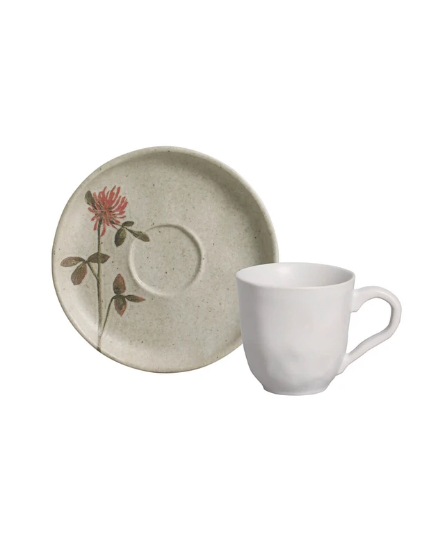 Porto Brasil Campestre Stoneware Coffee Cup and Saucer Set, Service for 6