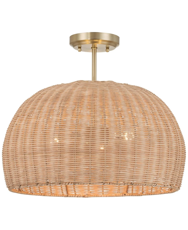 Possini Euro Design Fitzwilliam Brass and Wicker 3-Light Ceiling Light