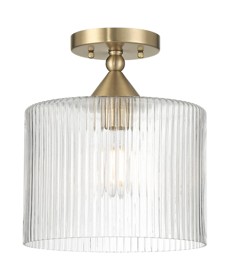 Modern glamour in a compact presentation, the Krakow collection from the Possini Euro Design brand is ready to elevate your living spaces with ease. A single bright bulb is housed within a clear ribbed glass shade, allowing for slightly diffused lighting without hiding the bulb, increasing vintage-inspired appeal. Satin brass finish completes the look with a warm, glowing tone. The Krakow semi-flush ceiling light is damp location rated for indoor use, suitable for any room in your home.