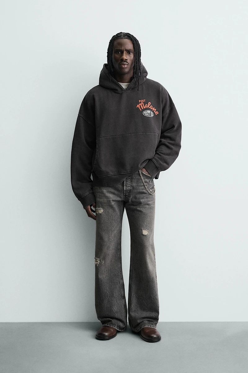 Relaxed fit sweatshirt made from a cotton blend fabric with a brushed interior. Hoodie collar and long sleeves. Post Malone™ Bravado graphic print on the front and back. Front kangaroo pocket. Washed effect. Ribbed trim.