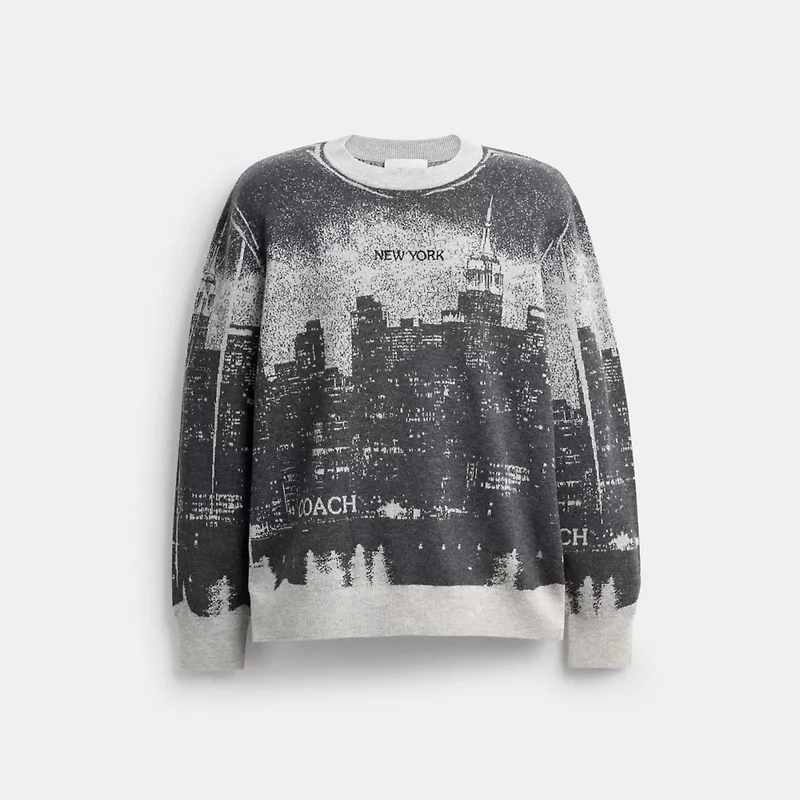 Greetings from NYC! Inspired by vintage postcards, this warm wool and cashmere-blend sweater features a knit jacquard skyline of the city we call home. The cozy crewneck is finished with embroidered details and ribbed trim.This sweater is crafted in a blend of wool and recycled cashmere––part of our commitment to rethinking and reducing our impact on the planet.