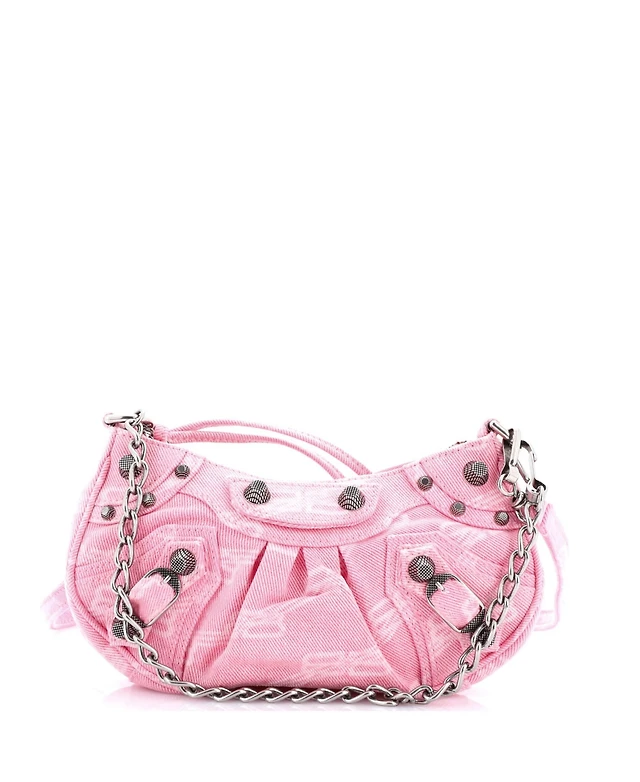 Pre-Owned Balenciaga Xs Le Cagole Giant Studs Shoulder Bag Denim with Crystals