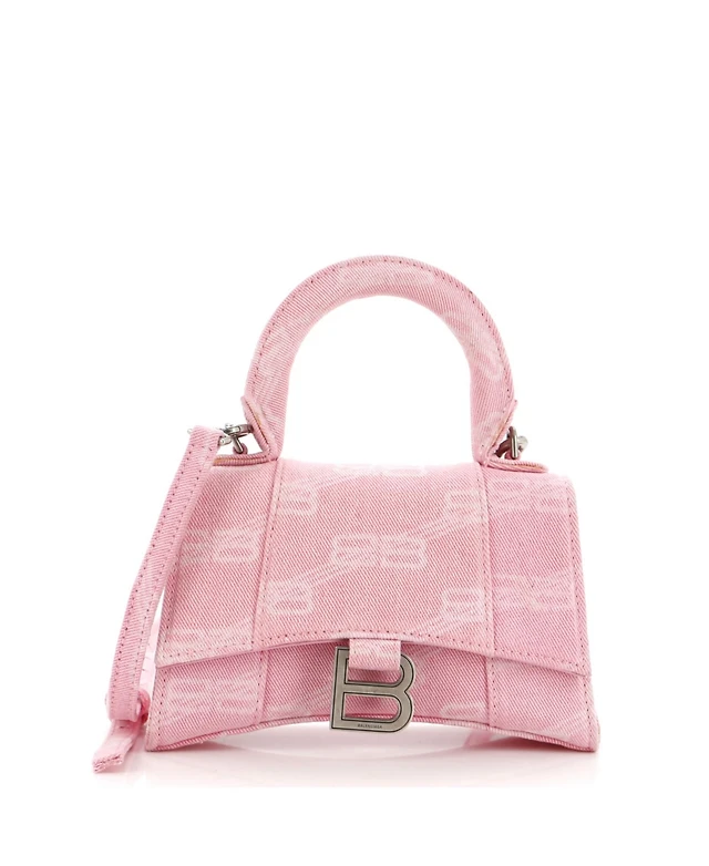 Pre-Owned Balenciaga Xs Hourglass Top Handle Bag Bb Monogram Denim