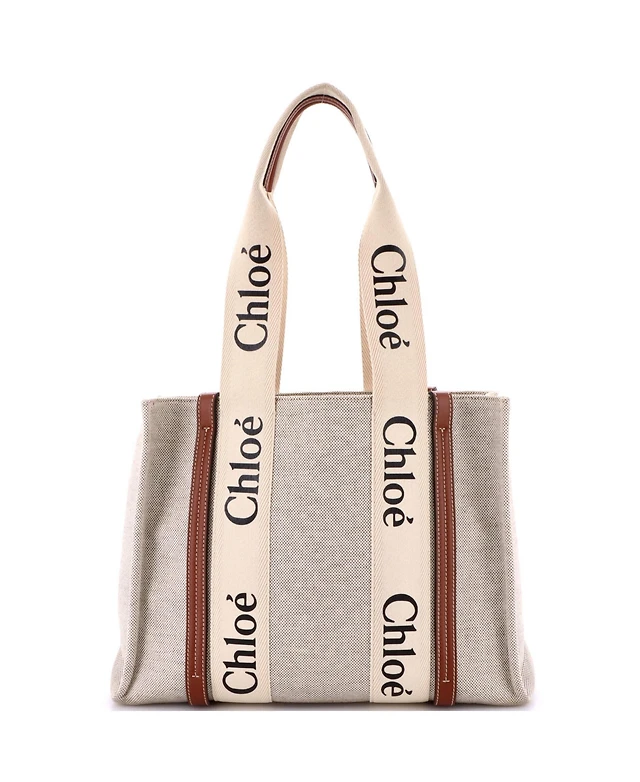 Pre-Owned Chloe Large Woody Tote Canvas with Leather