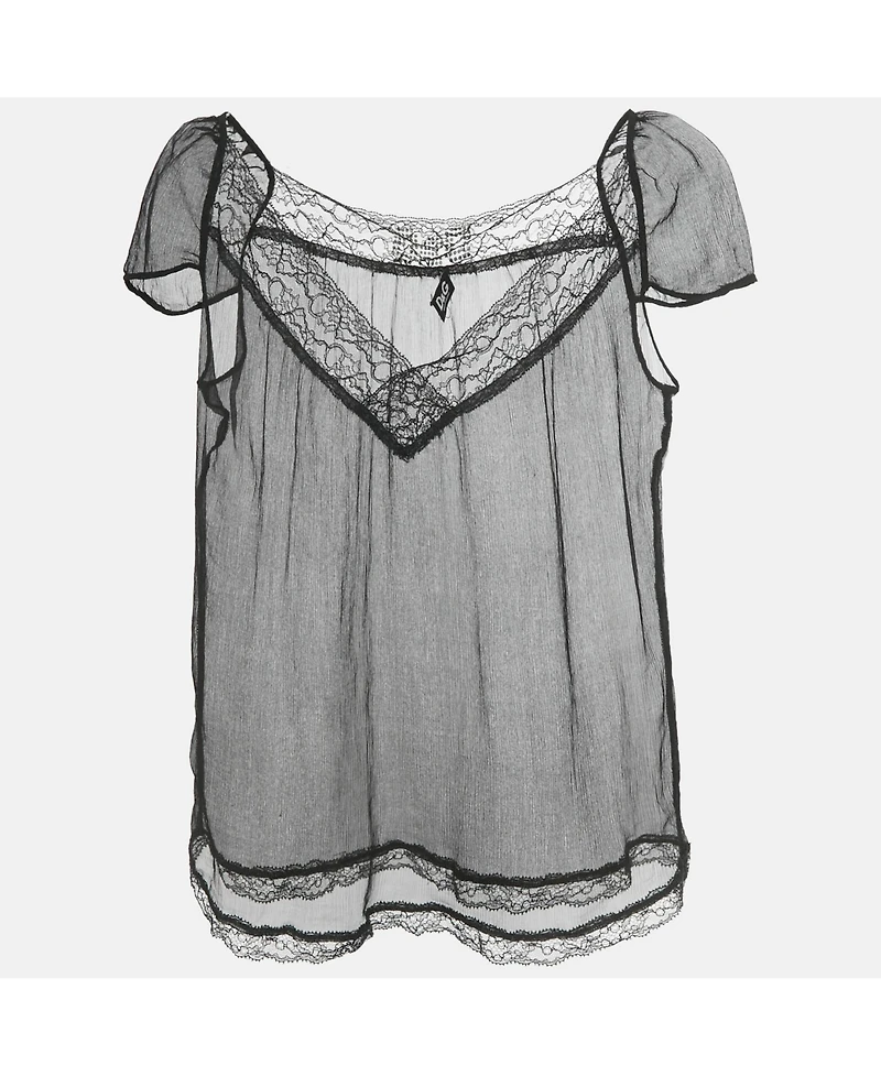 Pre-Owned Dolce & Gabbana Women's Black Silk Chiffon Lace Trim Sheer Top