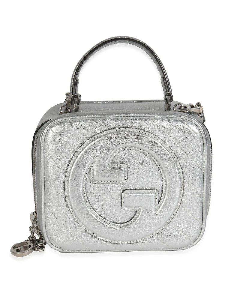 Pre-Owned Gucci Silver Metallic Sakai Be Green Calfskin Diagonal Stitched Blondie Top Hand in Bloomington, MN