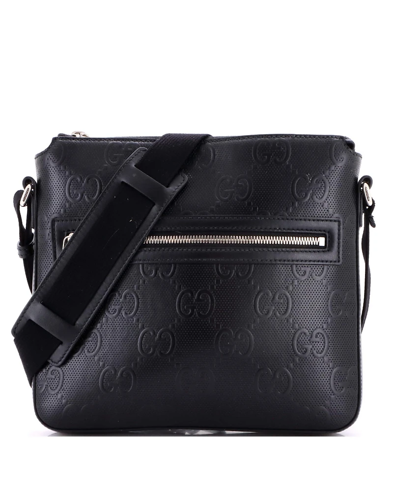 Pre-Owned Gucci Small Front Zip Messenger Gg Embossed Perforated Leather in Bloomington, MN