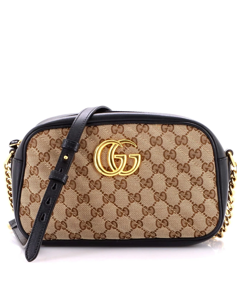 Pre-Owned Gucci Small Gg Marmont Shoulder Bag Diagonal Quilted Gg Canvas with Leather
