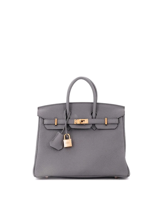 Pre-Owned Hermes Birkin 25 Handbag Grey Togo with Rose Gold Hardware