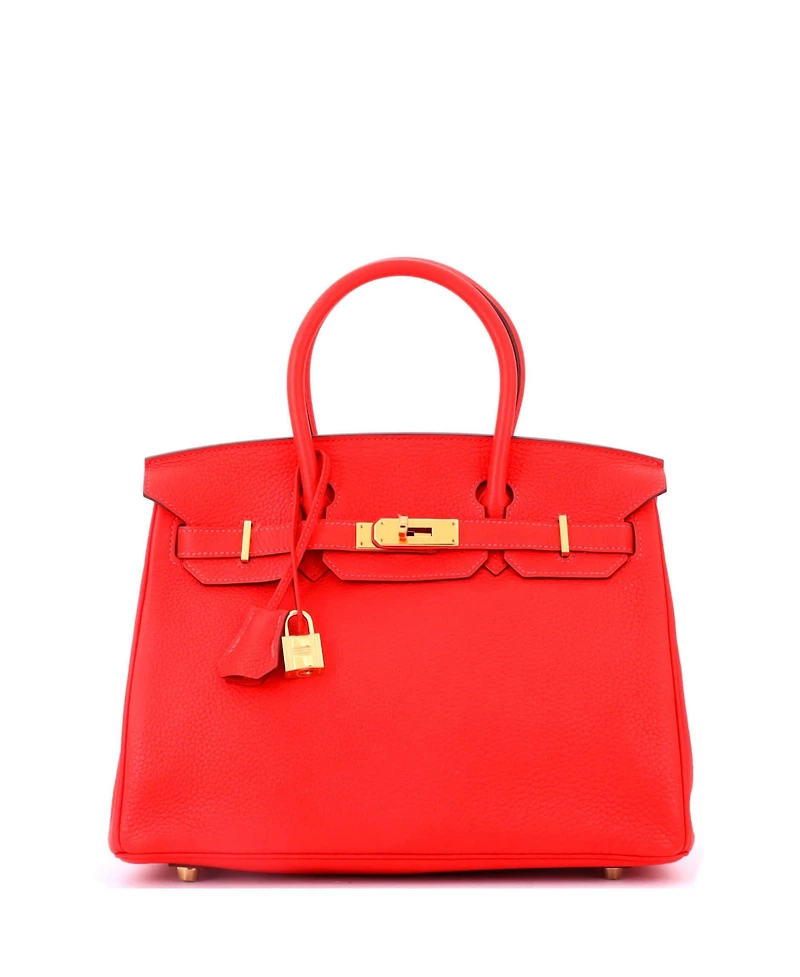 Pre-Owned HERMES Birkin 30 Handbag Red Clemence with Gold Hardware
