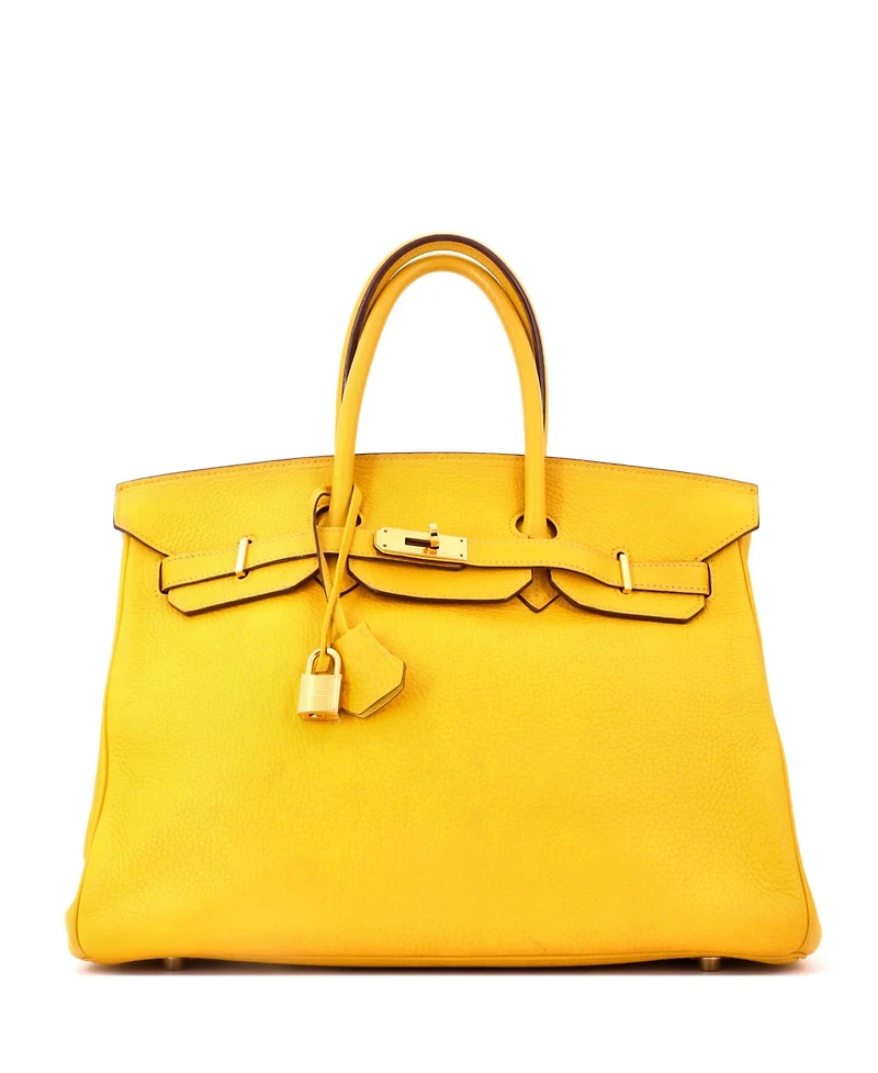 Pre-Owned HERMES Birkin 35 Handbag Yellow Togo with Gold Hardware