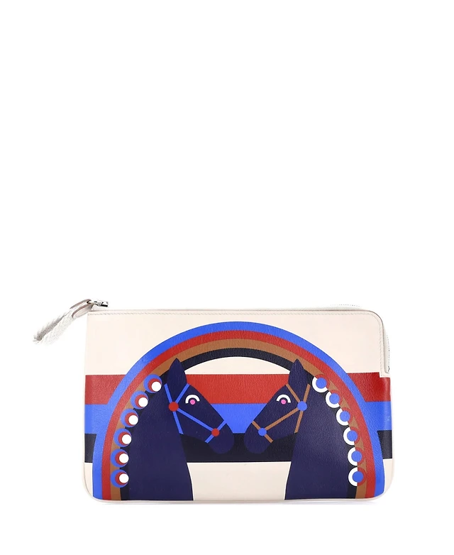 Pre-Owned HERMES Sursoie To Go Pouch Printed Silk and Leather