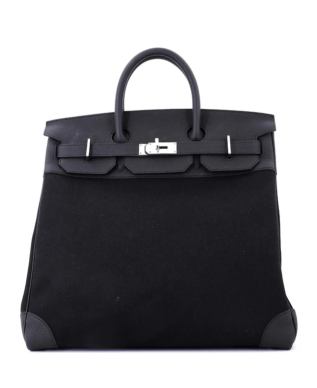Pre-Owned HERMES Hac 40 Handbag Toile and Black Togo with Palladium Hardware
