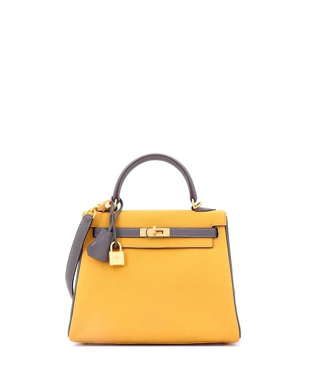 Pre-Owned Hermes Kelly 25 Handbag Bicolor Togo with Brushed Gold Hardware