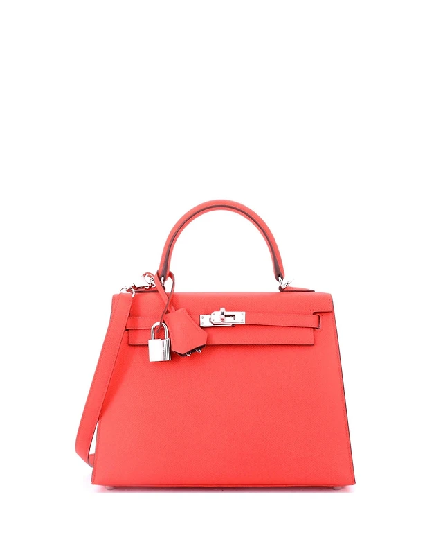 Pre-Owned HERMES Kelly 25 Handbag Orange Swift with Palladium Hardware