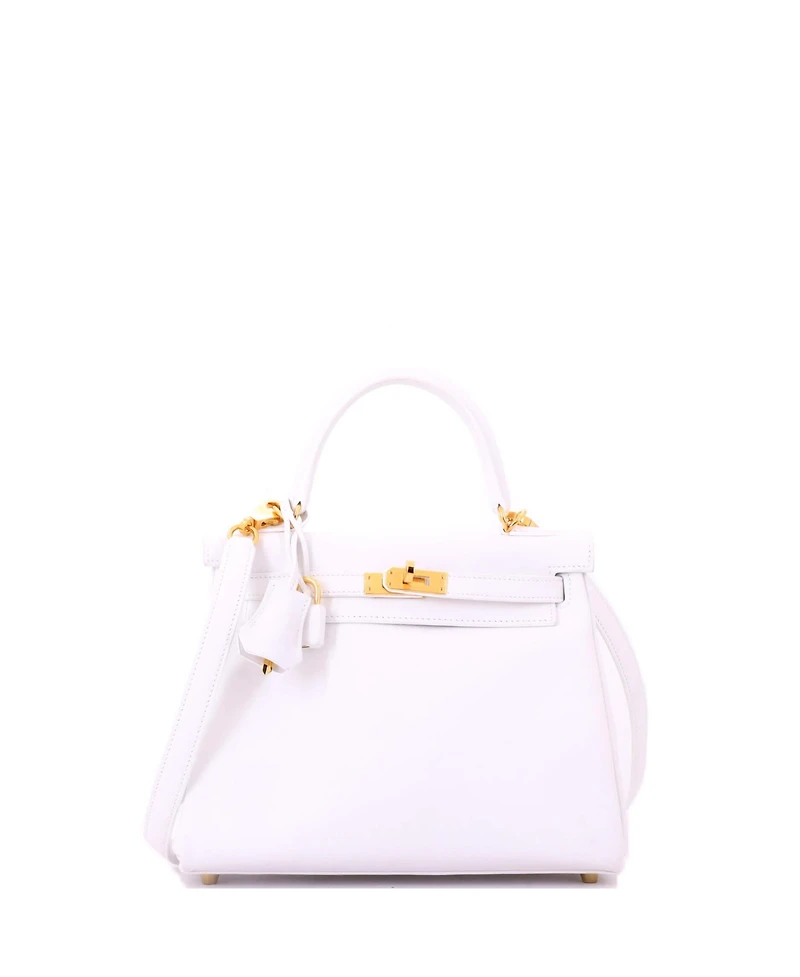 Pre-Owned HERMES Kelly 25 Handbag White Swift with Gold Hardware