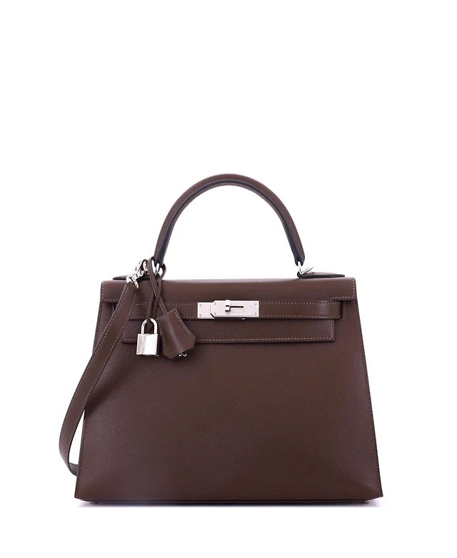Pre-Owned HERMES Kelly 28 Handbag Evercolor with Palladium Hardware