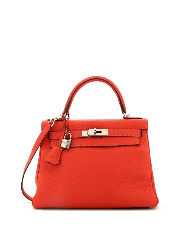Pre-Owned Hermes Kelly 28 Handbag Red Clemence with Palladium Hardware